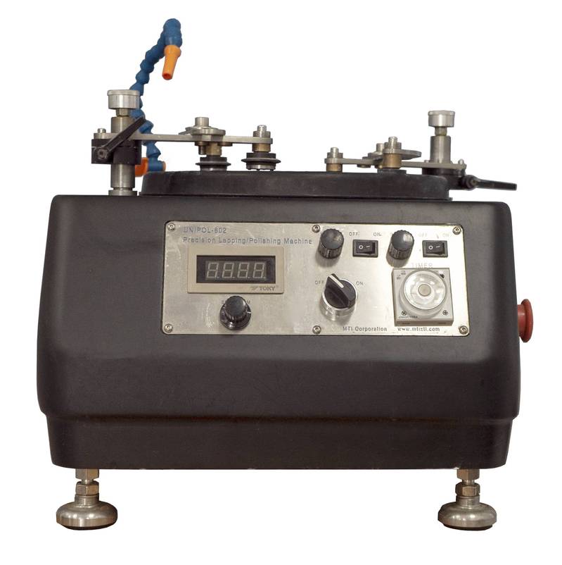 电源:110/220 V 50 Hz、功率:275 W、磨抛盘转速:0~250 rpm、工位:2个、支撑臂摆动次数:0~9 cpm、托盘端跳:0.008/180 mm、磨抛盘:Φ203 mm、载物盘:Φ80 mm、超平抛光盘(平面度为每25 mm×25 mm<0.0025 mm)。超精旋转轴(托盘端跳小于0.01 mm)。主轴旋转采用无级调速控制方式,并设有数显表实时显示转数。配有定时器,可准确控制工作时间(0~300 h之间)。