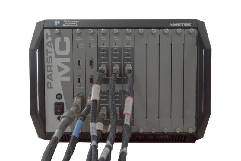 PMC多通道电化学工作站不仅具有研究级单通道电化学系统的宽泛功能,而且是具有高性价比的、高效的多通道电化学工作站。该工作站配置了8个独立通道,每个通道都标准配置强大及广泛的功能。任何一个通道的安装和拆卸,完全无需打断其他通道的实验。各个通道可以进行同步并行的高效能的日常测试,也可以分别测试不同实验条件下的不同的电化学体系,或者测试单一条件下的复杂体系的多个电极的实验数据。设备采用功能强大的电化学数据采集和分析软件VersaStudio。