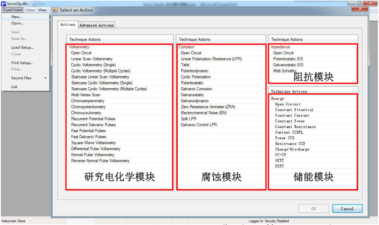 VersaStudio软件使用,打开软件,点击Experiment>New,选择相应测量方法,点击OK。