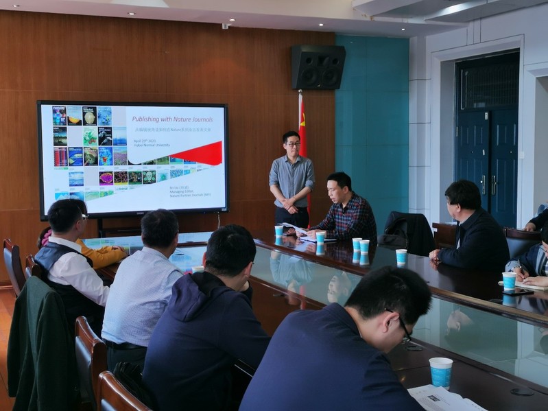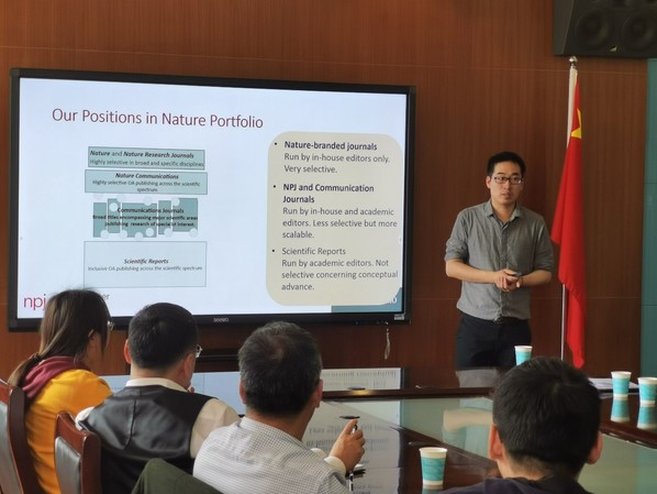 4月29日下午,自然合作期刊系列(NPJ)的主管编辑(Managing Editor)刘波博士应先进材料研究院的邀请,在科技大楼505会议室为我校师生作了题为“从编辑视角谈如何在Nature系列杂志发表文章”的专题演讲。刘波博士从编辑的视角,详细介绍了学术写作过程中应该关注的问题;并结合目前各大学术期刊的组稿特点以及投稿过程中如何与编辑的沟通等问题与我校老师进行了深入交流。刘波博士的讲座开拓了我们的视角,对于提高我们撰写学术论文的水平具有重要的指导作用。在讲座最后环节,刘波博士与现场师生进行了坦诚的交流互动,并详细解答了师生在学术写作过程中遇到的疑惑。讲座结束后,刘波博士又来到信息大楼二楼会议室与先进材料研究院的青年教师进行了座谈。