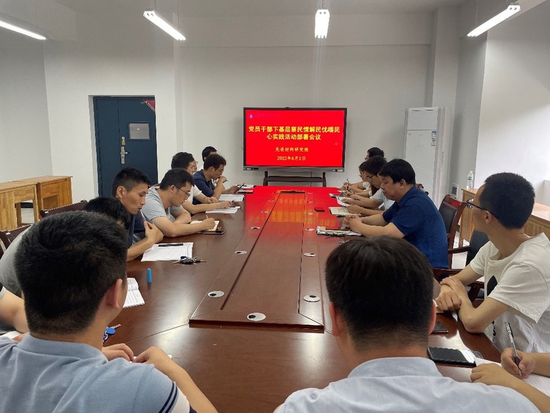 为贯彻落实《中共湖北省委关于开展党员干部下基层察民情解民忧暖民心实践活动的通知》要求,按照学校相关工作要求,6月2日下午2:30,先进材料研究院在大数据中心会议室召开党员干部下基层察民情解民忧暖民心实践活动动员部署会,对全院实践活动如何开展作出具体安排。院领导班子及全院教师参加会议。会议由党支部书记刘美风主持。