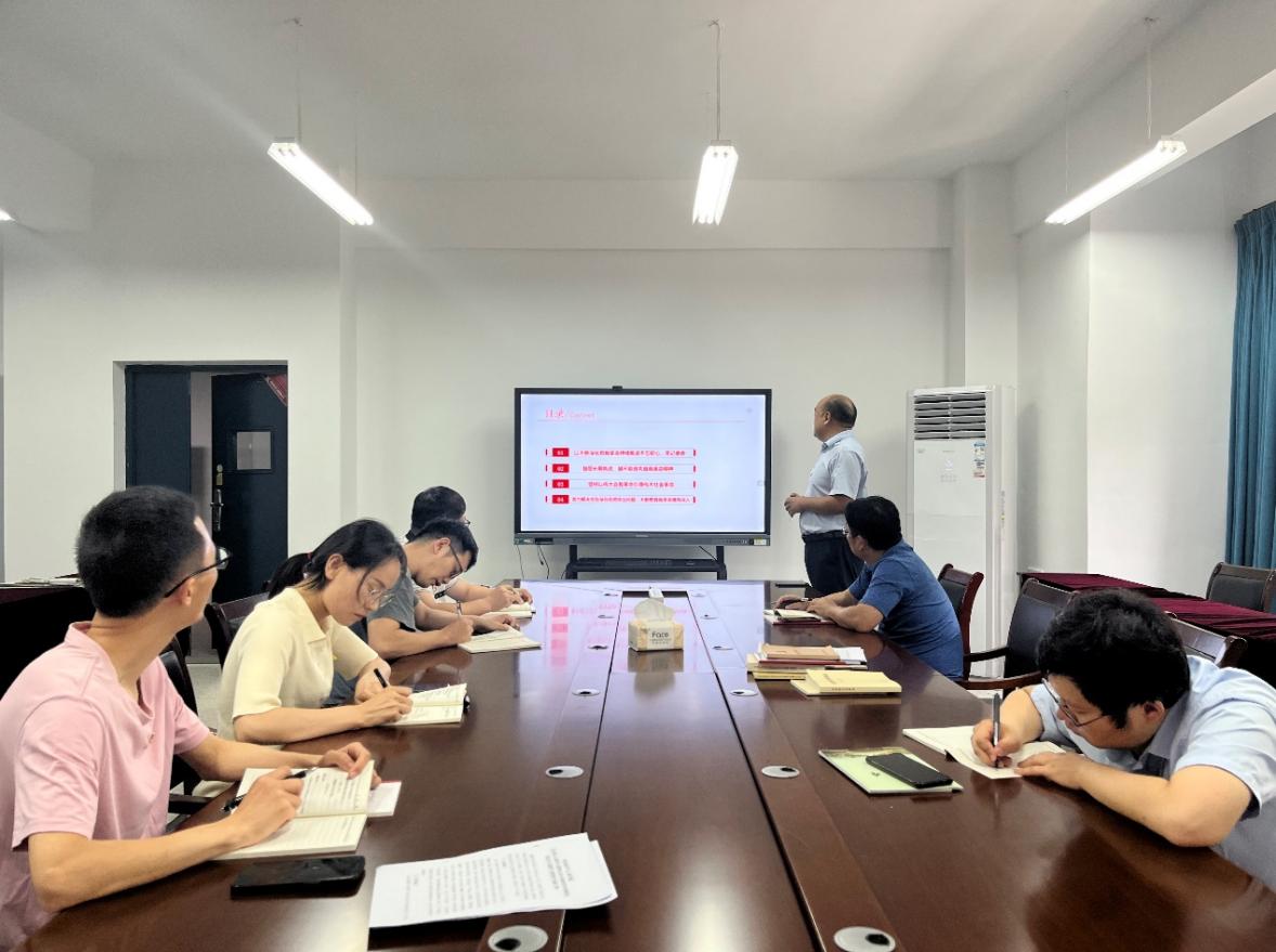 刘飞首先带领大家一起集中学习了《习近平新时代中国特色社会主义思想的世界观和方法论专题摘编》和《论党的自我革命》中部分篇目。刘飞书记强调,要全面、系统、深入学习领会习近平新时代中国特色社会主义思想,深刻领悟“两个确立”的决定性意义,增强履职尽责、服务师生和防范化解风险的本领,全院教职工要统一思想、齐心协力、主动担当,以新气象新作为推动学院高质量发展。中心组成员们随后针对主题教育学习的内容进行研讨发言。