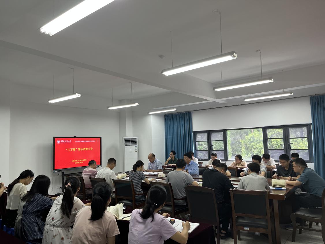 会上,学院组织全体教职工集体观看了警示教育片《剑指顽疾,砸局破圈》,并开展“镜鉴自省”警示教育。刘飞强调,全院教职工要以案为鉴、警钟长鸣,时刻绷紧纪律之弦,知敬畏、存戒惧、守底线,永葆清正廉洁的政治本色。一是必须铸牢政治忠诚,严守政治纪律和政治规矩。以主题教育为契机,在思想淬炼、精神洗礼中坚定信仰信念,自觉执行维护党中央权威和集中统一领导的各项制度规定,在大是大非面前旗帜鲜明。二是必须牢记教书育人初心使命,树立和践行正确政绩观。始终坚持人民至上,强化宗旨意识,严守群众纪律,把人民利益放在最高位置,做到克己奉公、一心为民。三是必须坚守廉洁底线,坚决抵制不良风气。始终坚持以党性立身做事,保持积极的人生态度、良好的道德品质、健康的生活情趣。