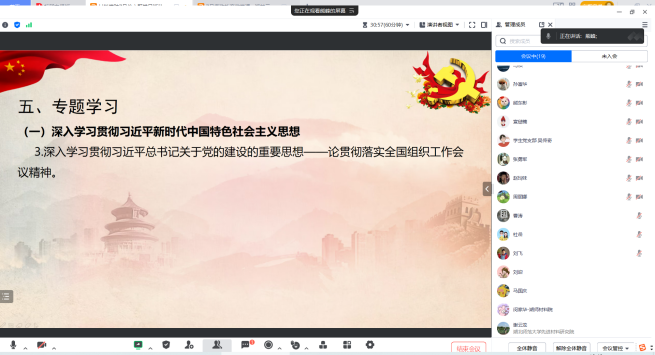 在研讨交流环节,张勇军、熊东彬同志作交流发言,一致表示要坚定理想信念,拒腐防变,弘扬伟大建党精神,在本职岗位上,保持初心,踏实工作,推动材料科学与工程学院快速、高质量发展。