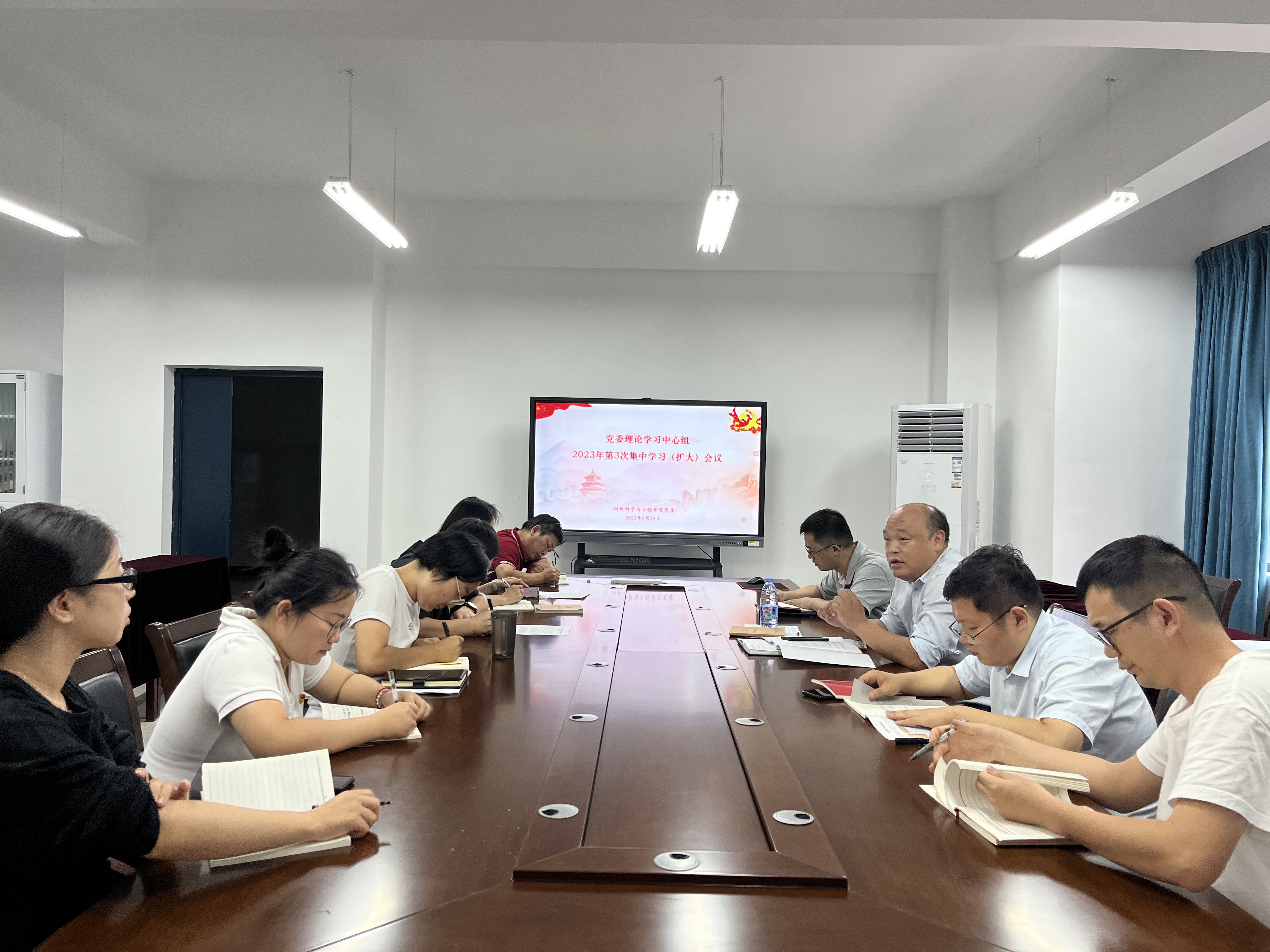 928日下午,材料科学与工程学304am永利集团,永利官网,永利集团组召开2023年第次集学习扩大议暨意识形态工作专题会议,党委书记刘飞主持会议并作总结讲话。党委理论学习中心组成员教师党支部支委、辅导员参加会议。