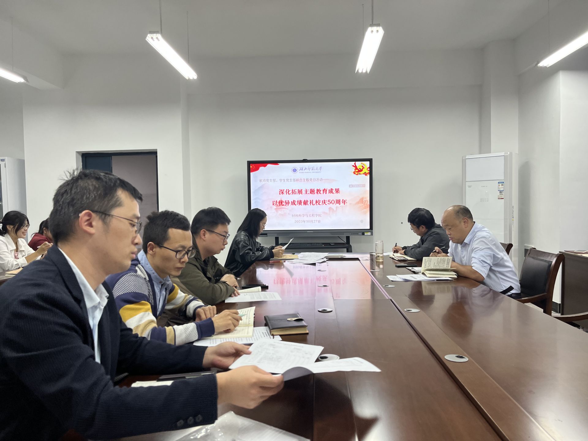2023年10月27日下午2:20,材料科学与工程学院教师党支部和学生党支部召开全体党员大会,组织开展题为“深化拓展主题教育成果 以优异成绩献礼校庆50周年”联合主题党日活动。活动由教师党支部书记潘其云同志主持。