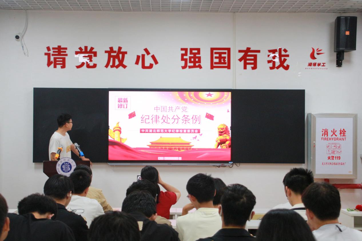 在微党课环节,徐若楷同志重点宣讲、解读关于违纪与纪律处分、纪律处分运用规则、对违法犯罪党员的纪律处分等章节内容,并结合高校实际进行了案例剖析和警示教育,希望全体同学严明党规党纪,严守政治纪律和政治规矩,做合格党员。吴传奇、李宗旭两位同志结合理论学习、党课学习分别谈了心得体会。
