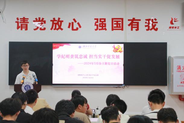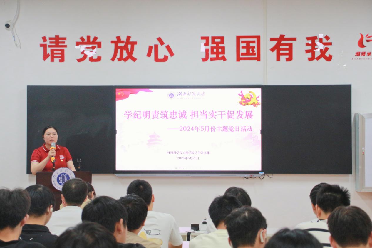 5月26日晚,材料科学与工程学院学生党支部在至诚一站式学生社区组织开展“学纪明责筑忠诚,担当实干促发展”主题党日活动。活动由学生党支部书记熊峰同志主持,支部全体党员、入党积极分子和全体本科生参加。