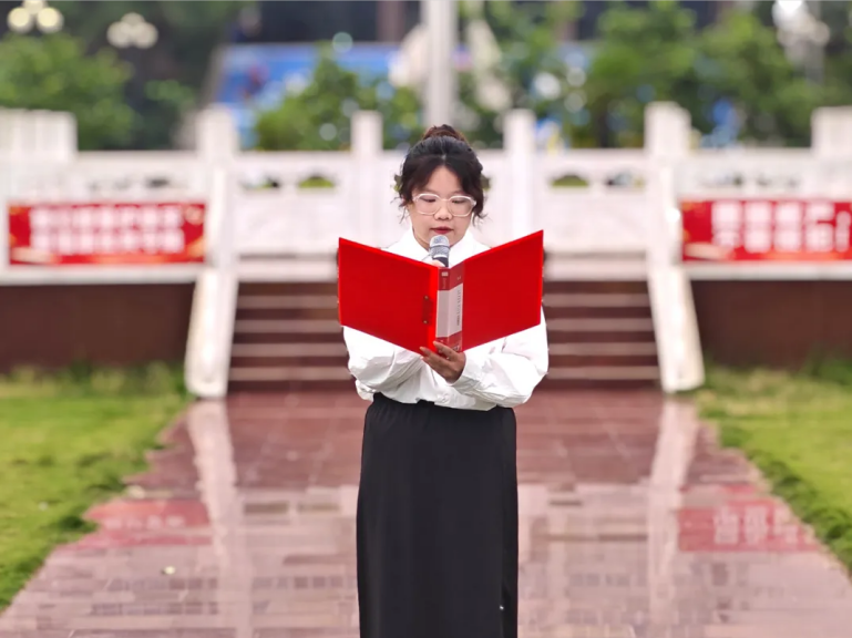最后,学生代表王丽进行国旗下演讲。她号召湖师青年以奋斗为桨,不畏惊涛骇浪;以创新为剑,划破人生路上重重阻挠;以满腔热血、非凡智慧,齐心协力,为实现中华民族伟大复兴的中国梦贡献青春力量。