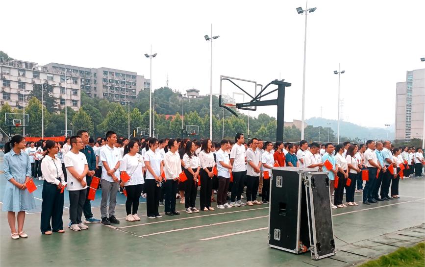 6时40分,国旗班迎着朝阳,迈着铿锵有力、整齐划一的步伐,护送国旗入场。伴随着气势磅礴的国歌,五星红旗冉冉升起,全体师生注目肃立。