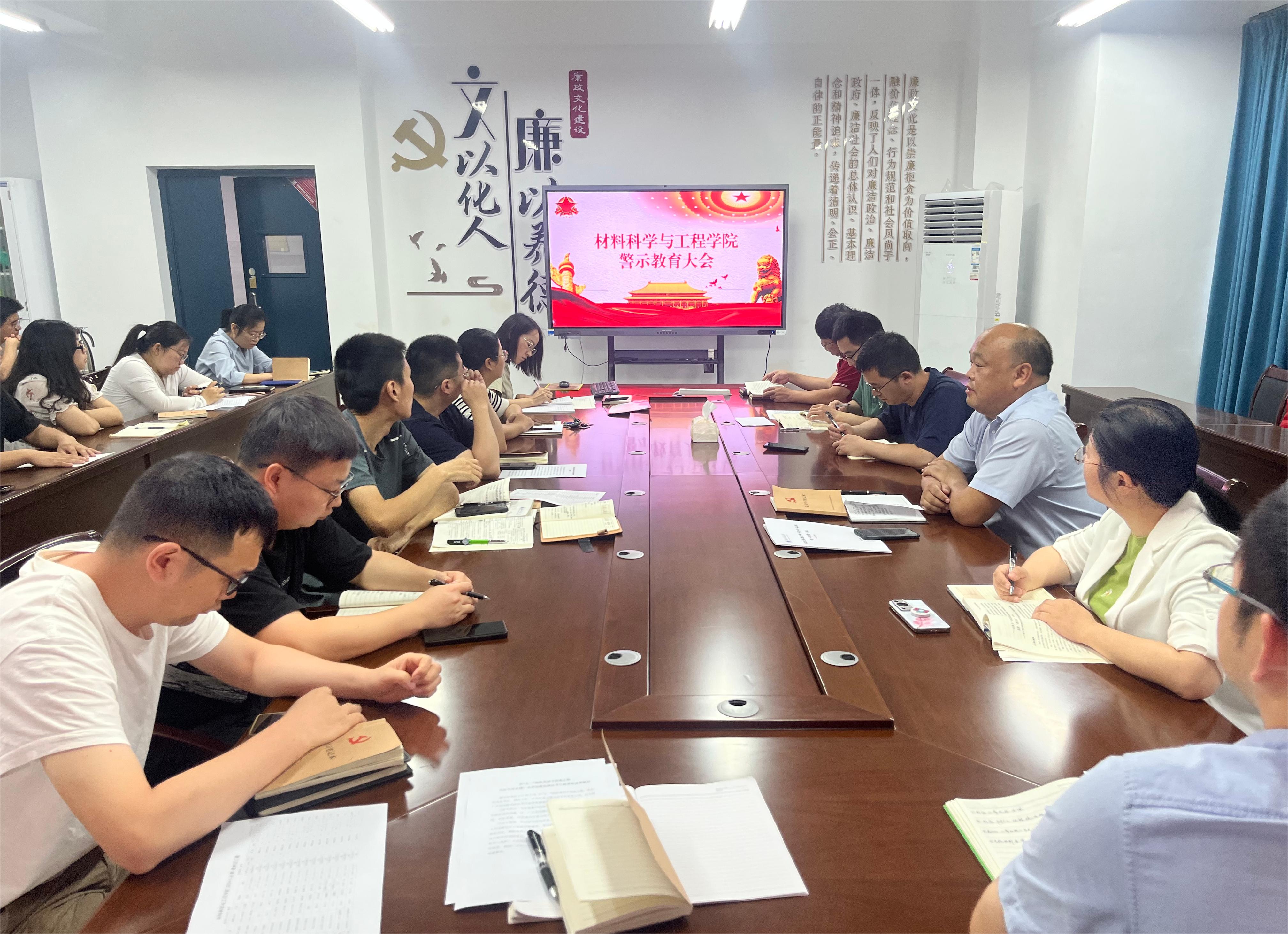 5月30日下午,材料科学与工程学院在产教融合中心24424会议室召开党纪学习教育警示教育大会,传达学习习近平总书记关于全面加强党的纪律建设的重要论述和学校领导干部警示教育会议精神,学习《高校反腐警示录》违纪违法典型案例,观看警示教育片《无所遁形》,并集中开展党纪学习教育党课学习。学院党委书记刘飞主持会议并讲授专题纪律党课,学院领导班子成员、全体师生党员参加。