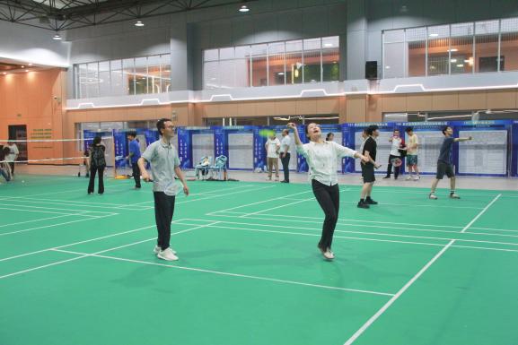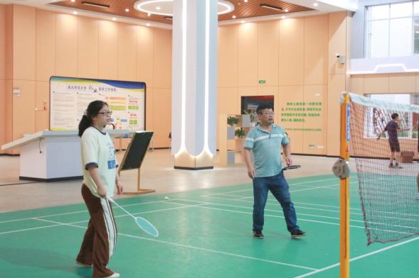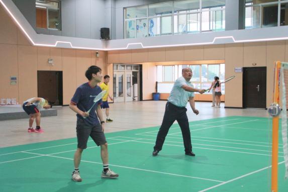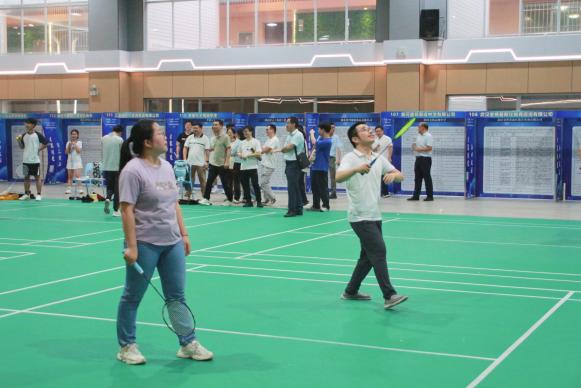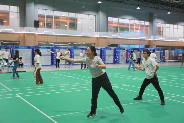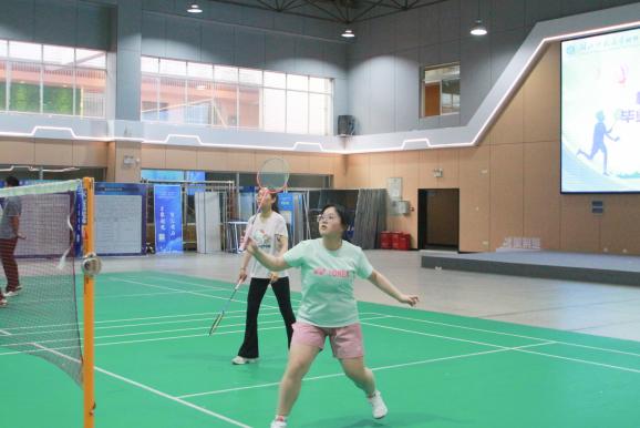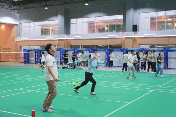 6月5日晚7点,在大学生活动中心羽毛球场,师生们身着运动服装,精神饱满地投入到比赛中。他们或轻盈跃起扣杀,或巧妙化解对方攻势,羽毛球在空中划出一道道优美的弧线。观众们则时而屏息凝神,时而欢呼雀跃,为选手们的精彩表现喝彩助威。