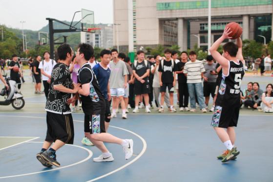 5月29日下午18时,在学校中心篮球场上,参赛师生们展示了高超的篮球技艺,精确的投篮、巧妙地传球、出色的防守,赢得了现场观众的阵阵喝彩,同时也为现场观众呈现了一场精彩绝伦的篮球盛宴。