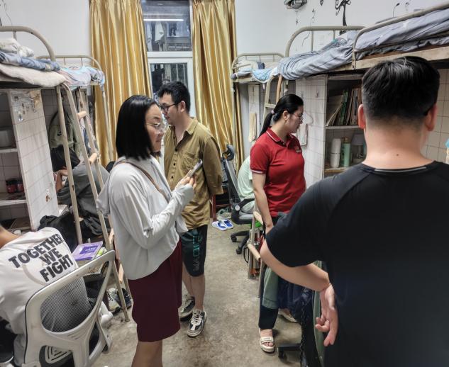 在期末考试临近之际,为深入了解学生的备考状态,进一步落实安全教育管理工作。2024年6月30日晚,304am永利集团党委副书记殷婷婷,2301班班主任张勇军、2302班班主任熊东彬,辅导员林静深入学生宿舍开展走访慰问活动。