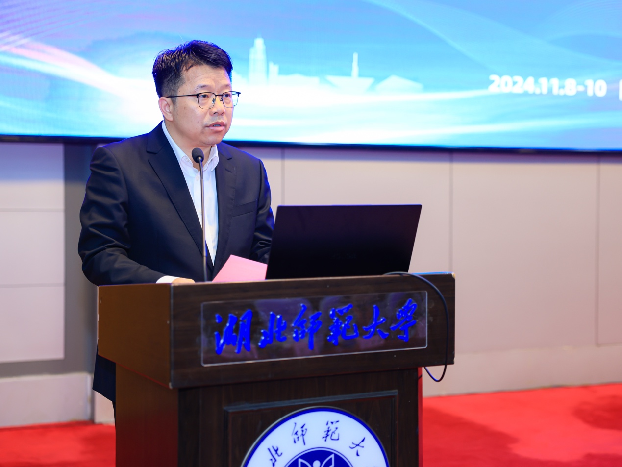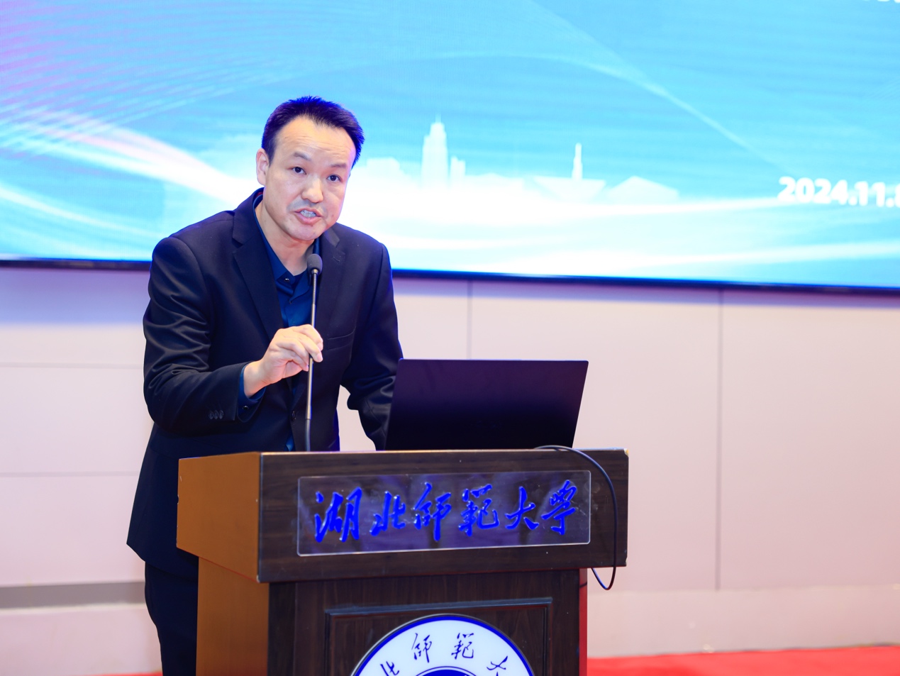 湖北师范大学党委书记李宏在致辞中代表我校向各位领导、专家、参会代表表示热烈的欢迎,对长期以来对我校发展给予关怀与支持的各界朋友表示衷心的感激,同时,介绍了学校建校51年来的办学成绩。他指出,湖北师范大学认真学习贯彻习近平总书记关于科技创新的重要论述,深化科研组织模式改革。将以此次研讨会的举办为契机,在先进功能材料与原子力显微技术领域深入探索,与各位专家、学者携手并进、紧密合作,为推动建设教育强省、科技强省作出新的更大贡献。