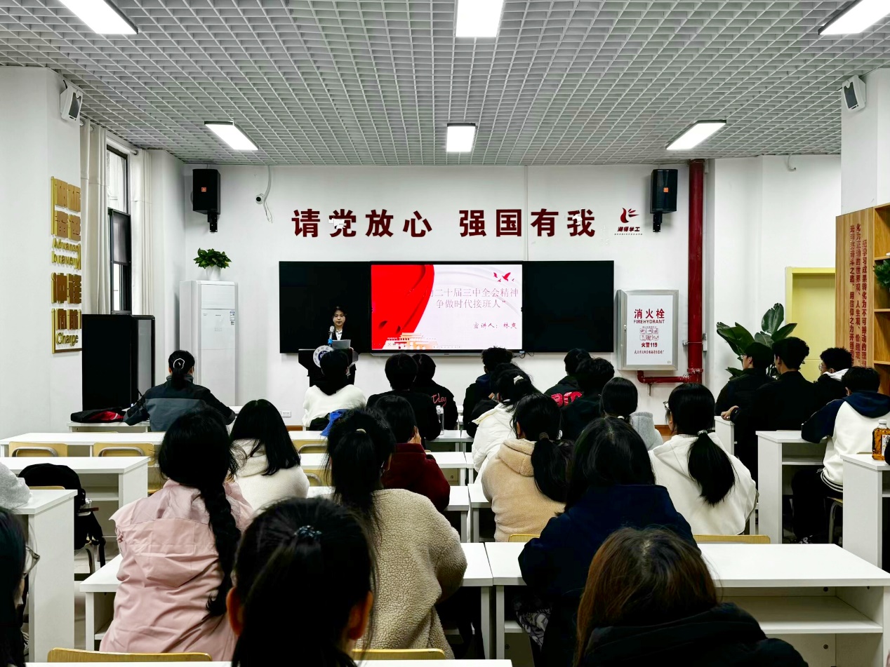 为深入学习领会党的二十届三中全会精神,引导全院团员青年统一思想行动,理解把握党的最新理论成果,激发青年的责任感和奋斗精神。11月20日上午,材料科学与工程学院在至诚一站式社区成功举办了“党的二十届三中全会精神”主题宣讲会。学院辅导员林静、学校“青马工程”宣讲团成员林爽、部分本科生参加此次活动。活动由林静主持。