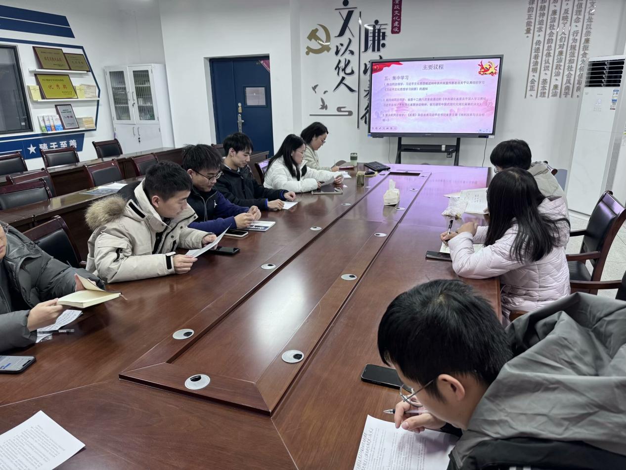 在集中学习环节,陈浩同志领学了《习近平文化思想概述》和中共中央宣传部发出的《关于认真组织学习<习近平文化思想学习纲要>的通知》;赵玲妹同志领学了省委十二届八次全会通过的《中共湖北省委关于深入学习贯彻习近平总书记考察湖北重要讲话精神、奋力谱写中国式现代化湖北篇章的决定》;曾永航同志领学了《求是》杂志上发表的习近平总书记重要文章《做到改革与法治相统—》;在专题学习环节,谭磊雳同志领学了《不断开辟马克思主义中国化时代化新境界——深入推进马克思主义理论研究和建设工程综述》。