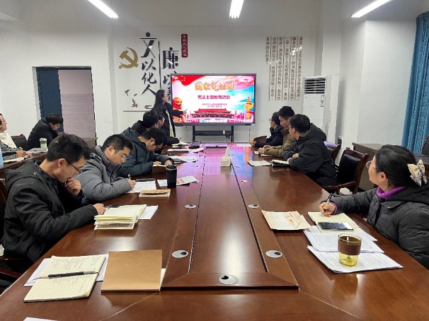 在专题学习环节,刘易斯同志领学了习近平文化思想概述和中共中央宣传部发出关于认真组织学习《习近平文化思想学习纲要》的通知;张勇军同志领学了习近平对新时代马克思主义理论研究和建设工程作出的重要指示强调;曹艺同志领学了省委十二届八次全会通过的《中共湖北省关于深入学习贯彻习近平总书记考察湖北重要讲话精神、奋力谱写中国式现代化湖北篇章的决定》;殷婷婷同志领学了《求是》杂志发表习近平总书记重要文章《必须坚持守正创新》;曹涛同志领学了习近平总书记在国家勋章和国家荣誉称号颁授仪式上的讲话;孙富华同志领学了不断开辟马克思主义中国化时代化新境界——深入推进马克思主义理论研究和建设工程综述