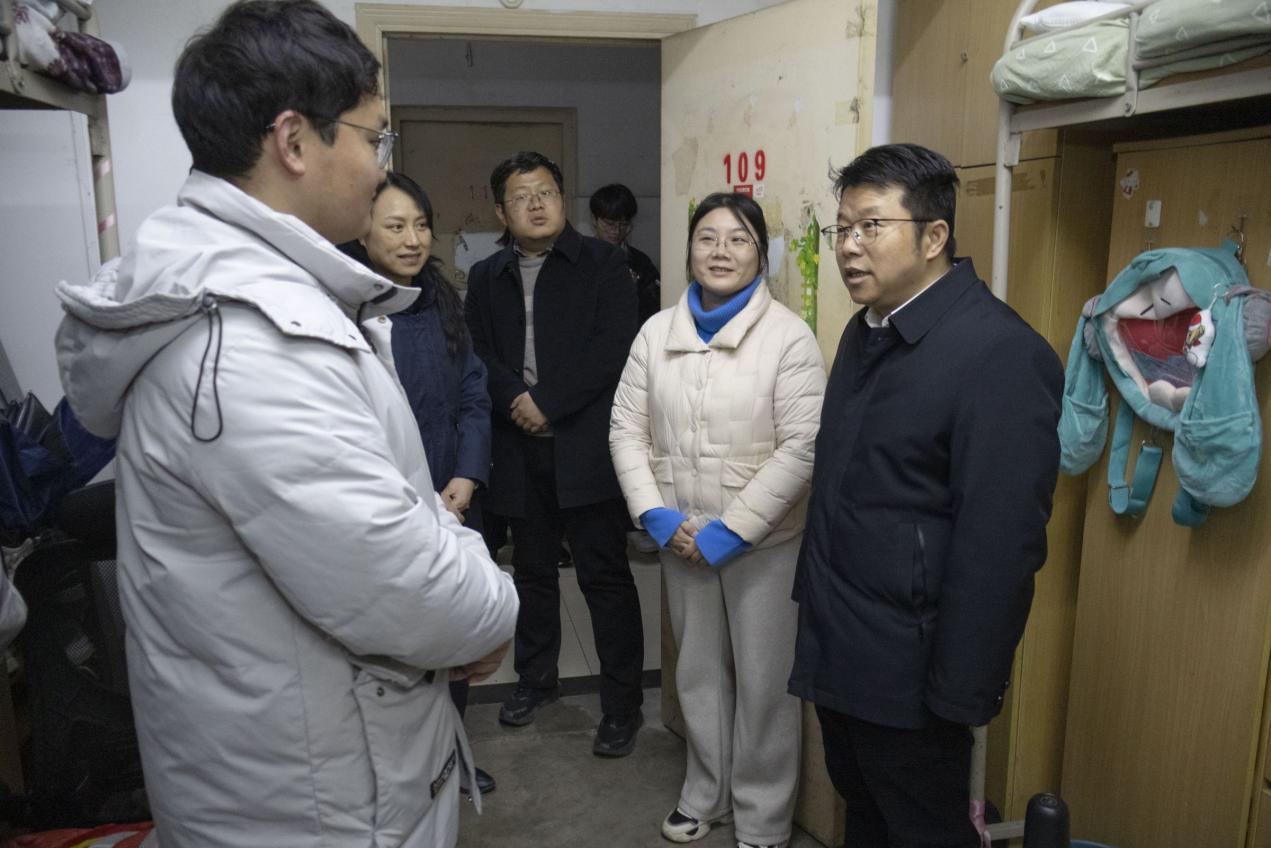 新学期伊始,为深入了解学生开学返校情况和学习生活状态,加强与学生的沟通交流,切实做好新学期的管理服务工作。2月16日晚7点,校党委书记李宏到304am永利集团学生宿舍走访慰问返校学生。党政办主任邵幼岩、学工部部长李洁及学院领导班子、班主任、辅导员参加走访慰问活动。