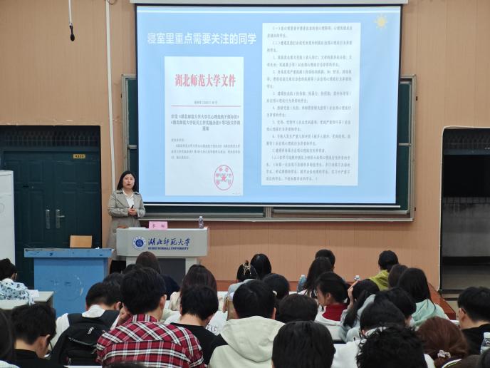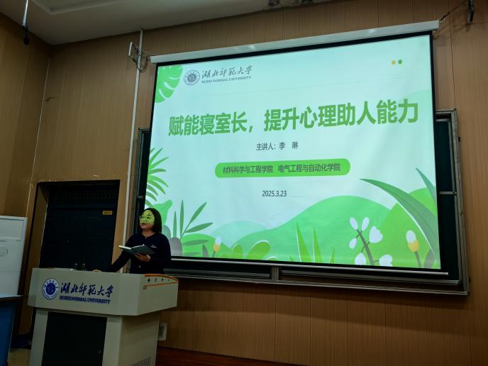 为提升寝室长心理健康知识水平与宿舍管理能力,加强学生心理健康教育,营造温馨、和谐的宿舍氛围,2025年3月23日晚,材料科学与工程学院联合电气工程与自动化学院在生科院8J21阶梯教室举办“赋能寝室长提升心理助人能力”专题活动。此次活动特邀校心理健康中心教师李琳做专题讲座,材料科学与工程学院党委副书记殷婷婷、辅导员林静、电气工程与自动化学院辅导员黄新望、王昭涵出席本次活动,材料科学与工程学院全体本科生寝室长、电气工程与自动化学院2024级全体寝室长参加此次讲座。