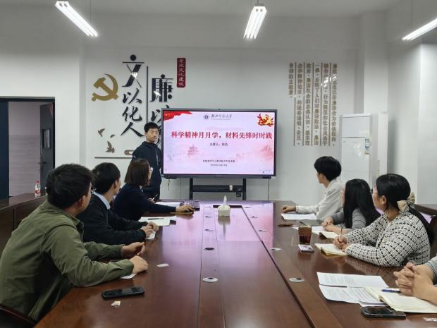 在支部党建品牌“科学家精神月月讲 材料先锋时时践”活动环节中,陈浩同志以《科学家精神引领材料创新》为题讲授微党课,通过讲述徐寿院士实业报国的赤子情怀、师昌绪先生布局纤维强国的战略眼光,以及14岁少年张恒自制火箭意外观测到八个马赫环的科研奇闻等一个个小故事,生动诠释科学探索永无止境的精神内核,同时还结合自身科研经历,号召研究生党员坚定理想信念,树立远大志向,脚踏实地,埋头苦干,以积极向上的精神风貌和严谨治学的工作作风,让科研之树开出绚丽之花。