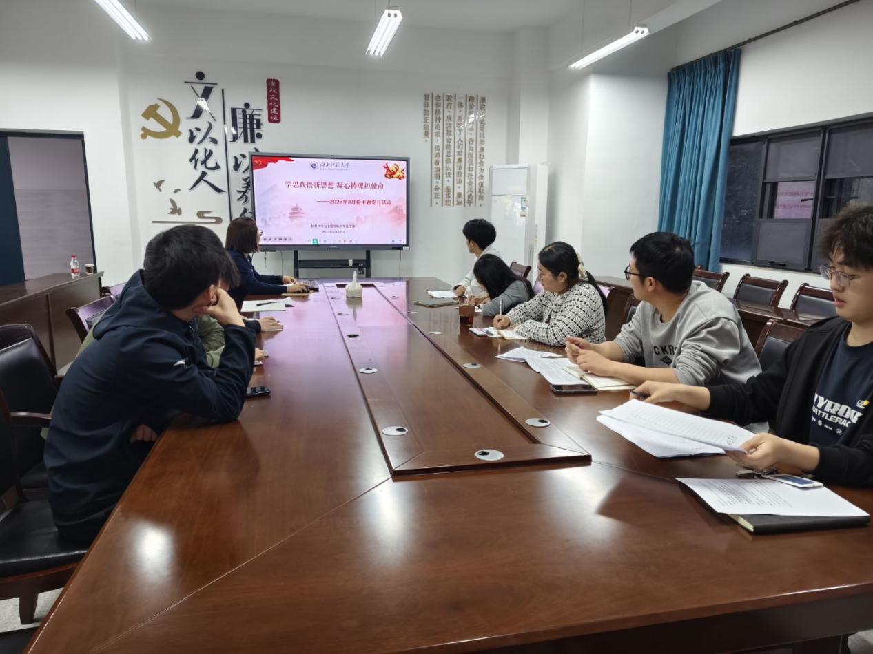 324日晚,材料科学与工程学院学生党支部在产教融合中心24424会议室开展“学思践悟新思想 凝心铸魂担使命”主题党日活动。活动由党支部书记林静同志主持,党委副书记殷婷婷同志到会指导,支部全体党员参加。