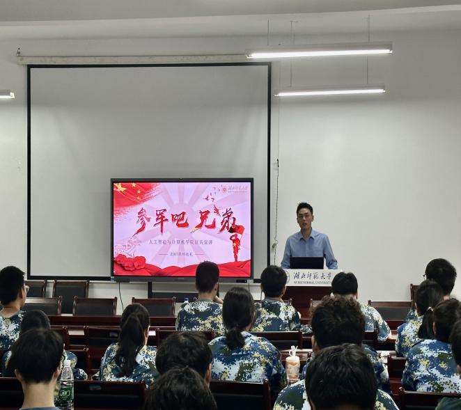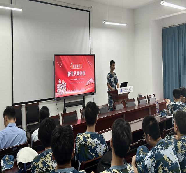 动员会上,退役士兵帅远礼同学进行征兵宣讲,快速点燃了新生们的从戎热情。帅远礼结合自身军旅经历,生动展现了军人“不怕苦、不怕累”的责任担当;鼓励材料科学与工程学院新生以此次军训为契机磨炼个人意志,学好本领,“将个人理想与国家需求结合,若有报国志,可积极投身国防事业”。新生代表积极上台表态,以行动率先呼应,并作出郑重承诺:“军训期间,坚决做到服从命令不打折,严守纪律不犯错,突破自我不畏难,团结协作护集体,互帮互助共成长,切实用实际行动展现材料学子的青春担当。”