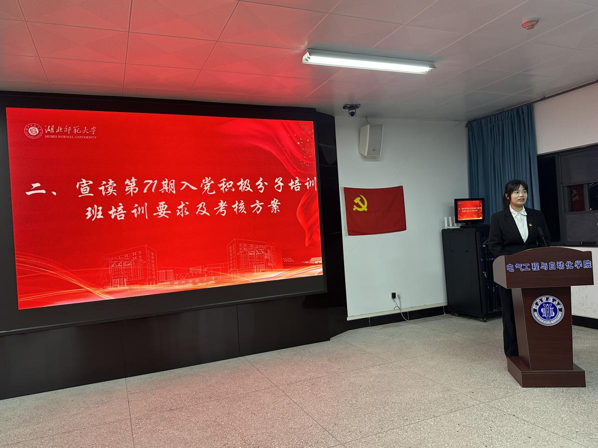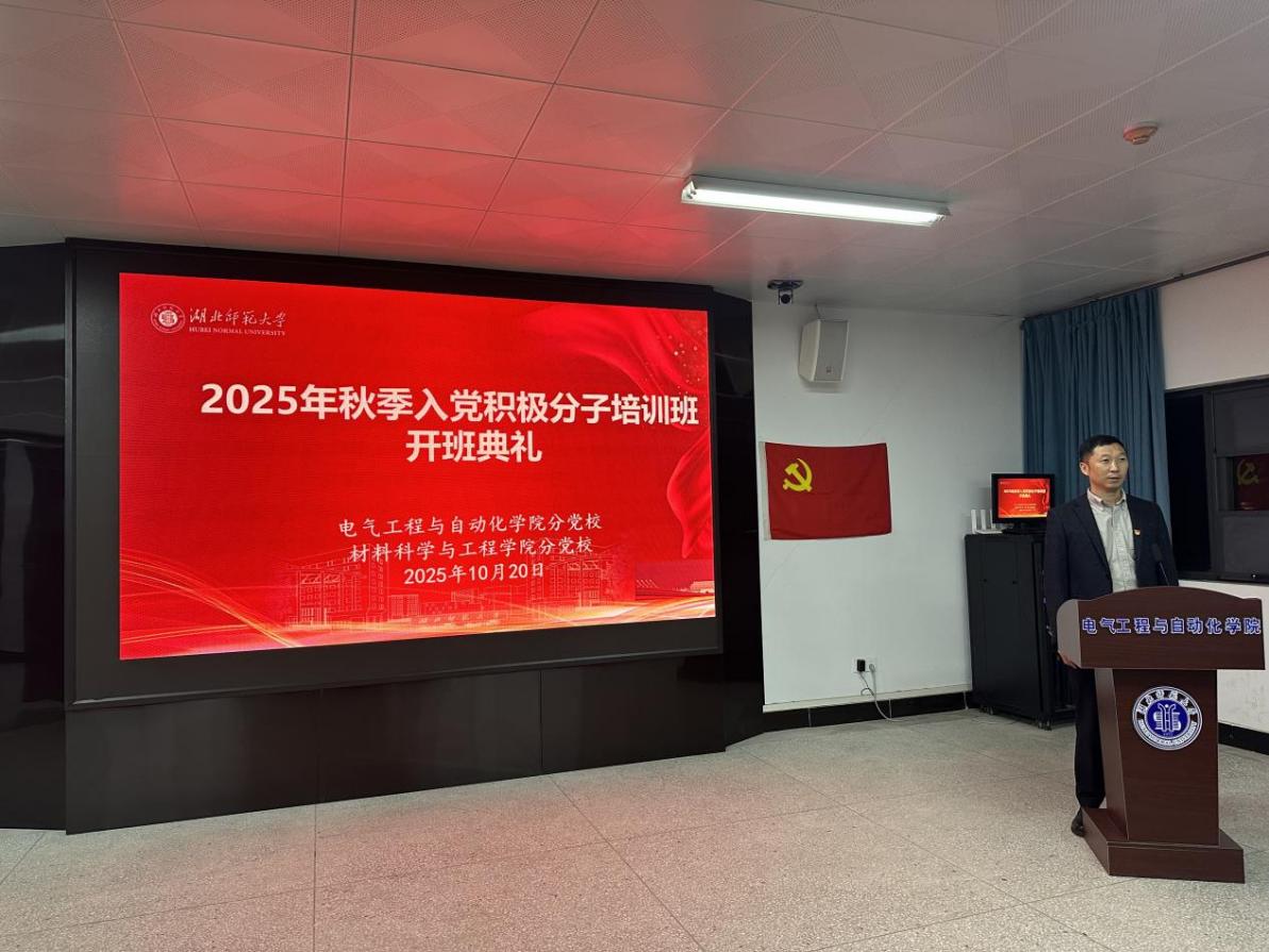 2025年10月20日晚,材料科学与工程学院分党校和电气工程与自动化学院分党校联合举办的校第71期入党积极分子培训班开班典礼,在产教融合中心24341会议室顺利举行。材料学院党委书记刘飞、电气学院党委书记严海燕,以及两院党委副书记、学生党支部书记出席典礼,45名入党积极分子学员参加,典礼由电气学院党委副书记金高辉主持。