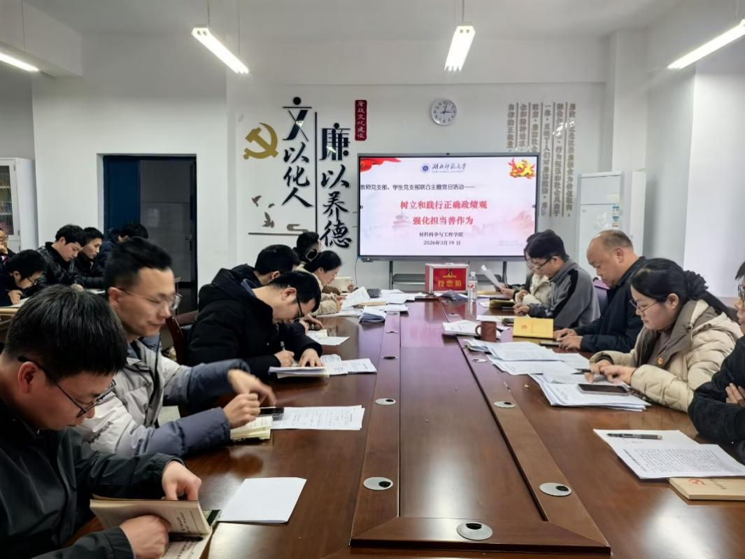 3月19日下午,材料科学与工程学院教师党支部与学生党支部联合召开全体党员大会,组织开展以“树立和践行正确政绩观 强化担当善作为”为主题的党日活动。活动由教师党支部书记曹艺同志主持。