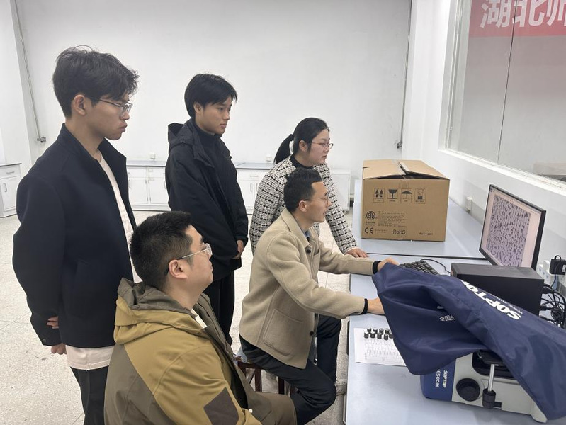 比赛现场,参赛学子沉着冷静、规范操作,展现出良好的专业素养。从试样磨抛的力度把控,到浸蚀时机的精准判断;从显微镜观察的细致调整,到整个操作流程的严谨规范,每一步操作、每一个细节,都彰显着同学们扎实的训练功底与严谨的科学态度,充分展现了湖师材料学子勤学苦练、精益求精的求学初心。