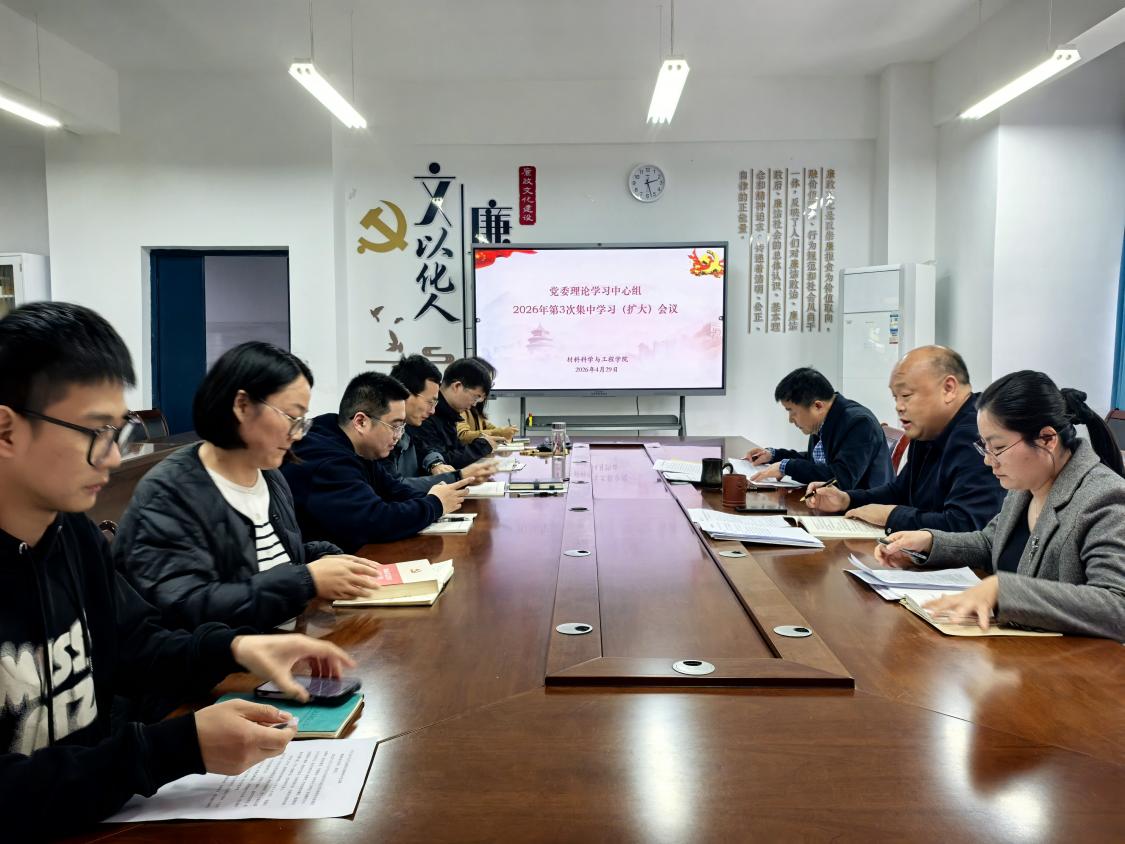 4月29日下午,院党委理论学习中心组召开2026年第3次集中学习(扩大)会,院党委书记刘飞主持集体学习并作讲话。全体院领导,党委理论学习中心组成员、各党支部书记和辅导员参加会议。